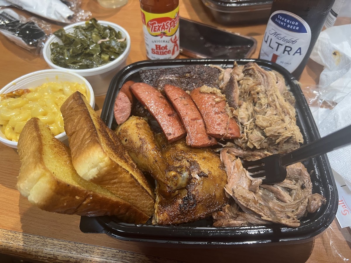 We are staying in town for a couple days for a Marine Corps graduation Our Air BnB was literally a 3 minute walk from Smokehouse BBQ when I looked up BBQ restaurants The reviews were pretty good so obviously I had to go Being in the BBQ business for 24 years myself, I had to get the sampler platter Ribs, Beef Brisket, Pulled Pork, Chicken, Smoked Sausage I had mac & cheese, collard greens for my sides Very picky about collard greens ( very good ) !! It was all very tasty with the perfect smoked flavor in the meats Met the owner which she was very sweet We talked BBQ and some personal stories It was a great experience for sure I highly recommend stopping by if you are in the area Fantastic BBQ at a great price, great atmosphere, and great people serving you with a smile Keep it going Smokehouse BBQ I will be back