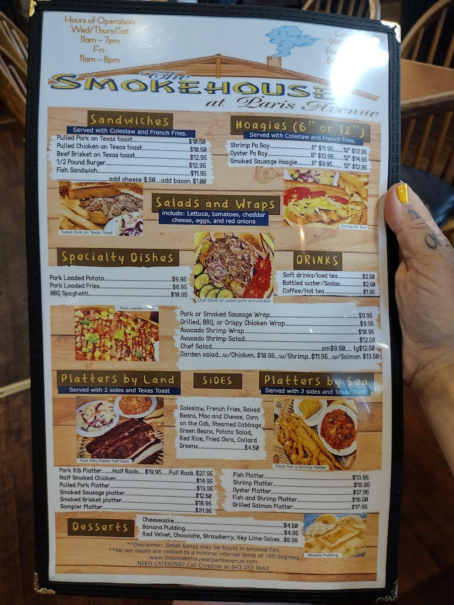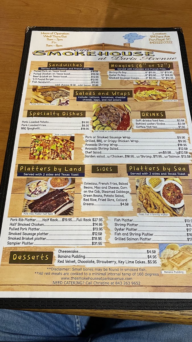 The menu invites diners to settle in and enjoy meals that are rich in smoky, savory flavors without unnecessary fuss—meals designed for sharing good company in a laid-back setting.